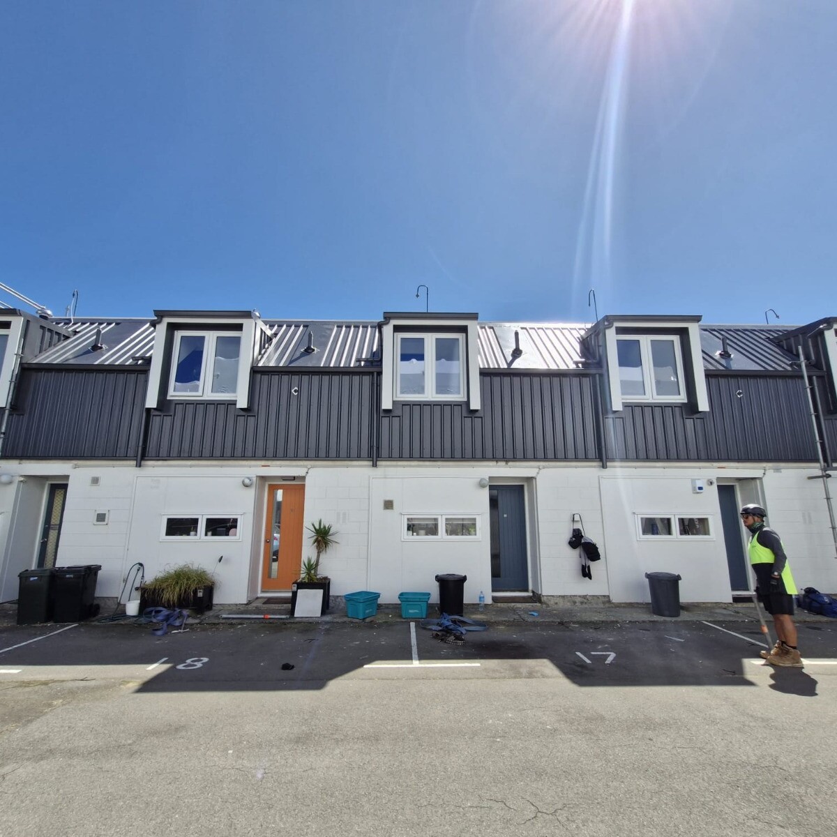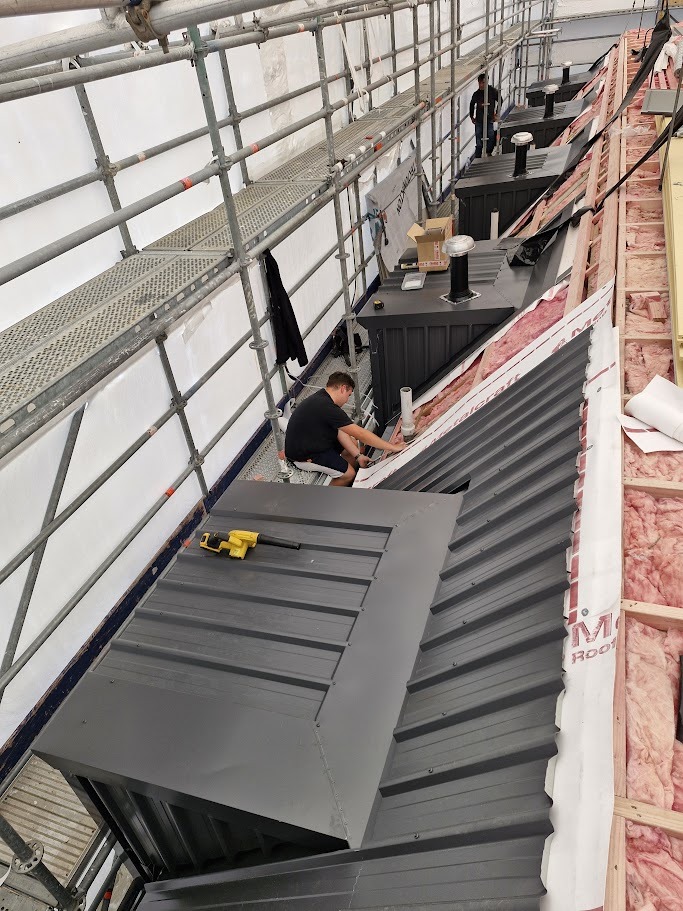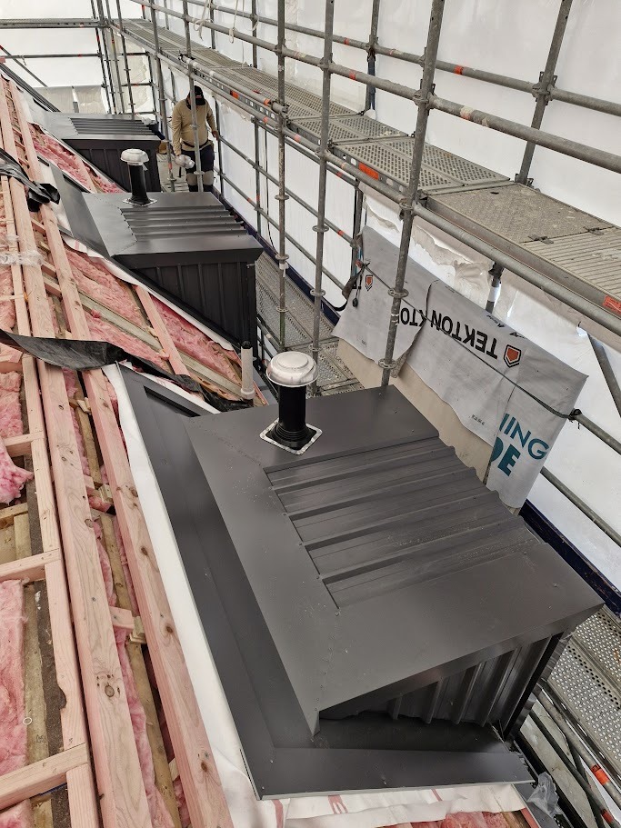Installed metal roofing and cladding with a butynol top.