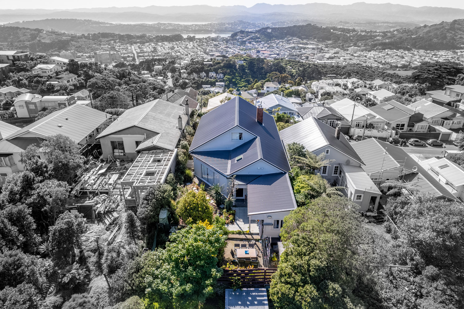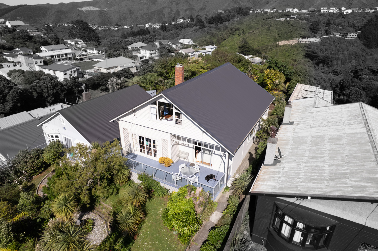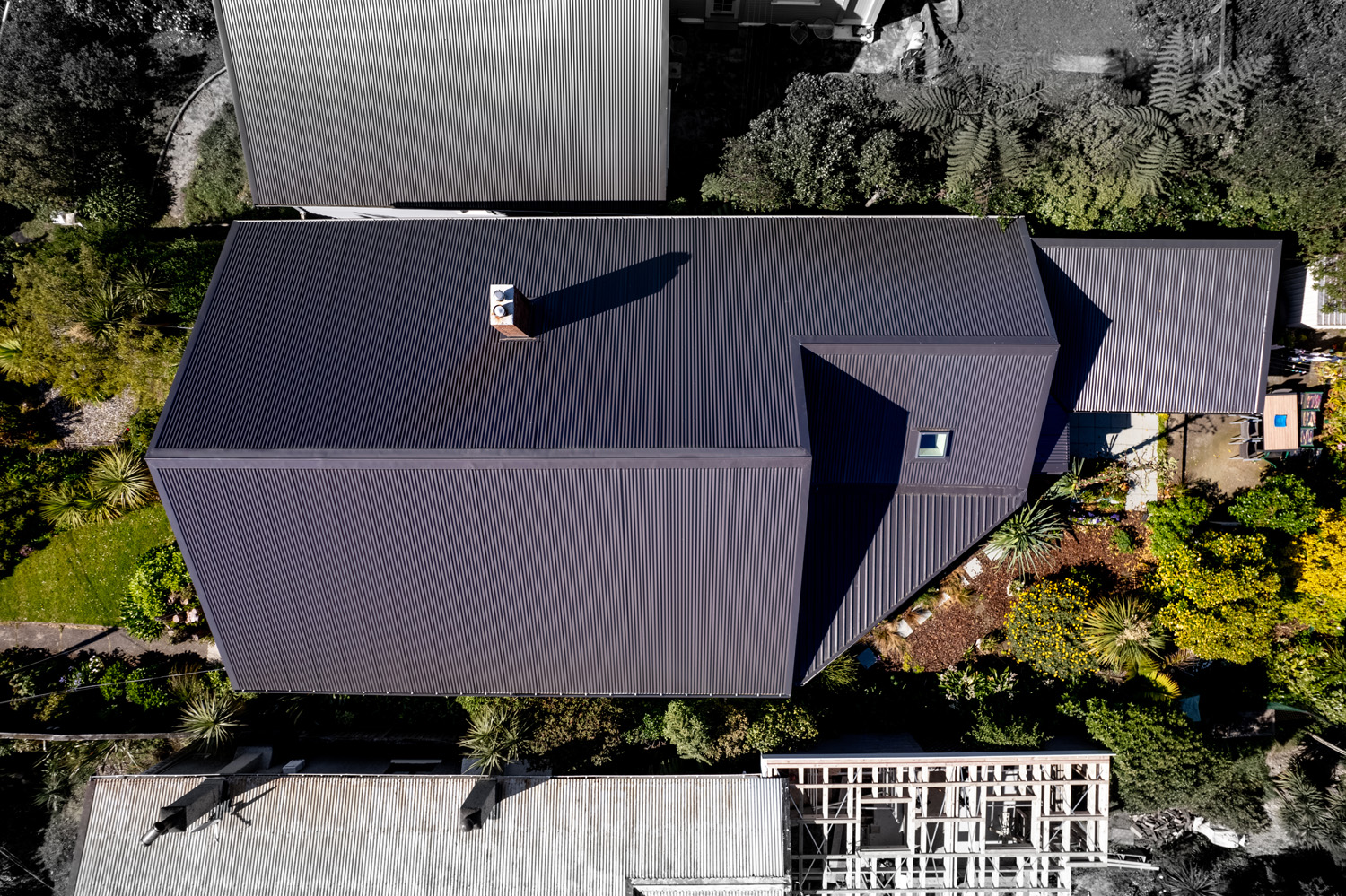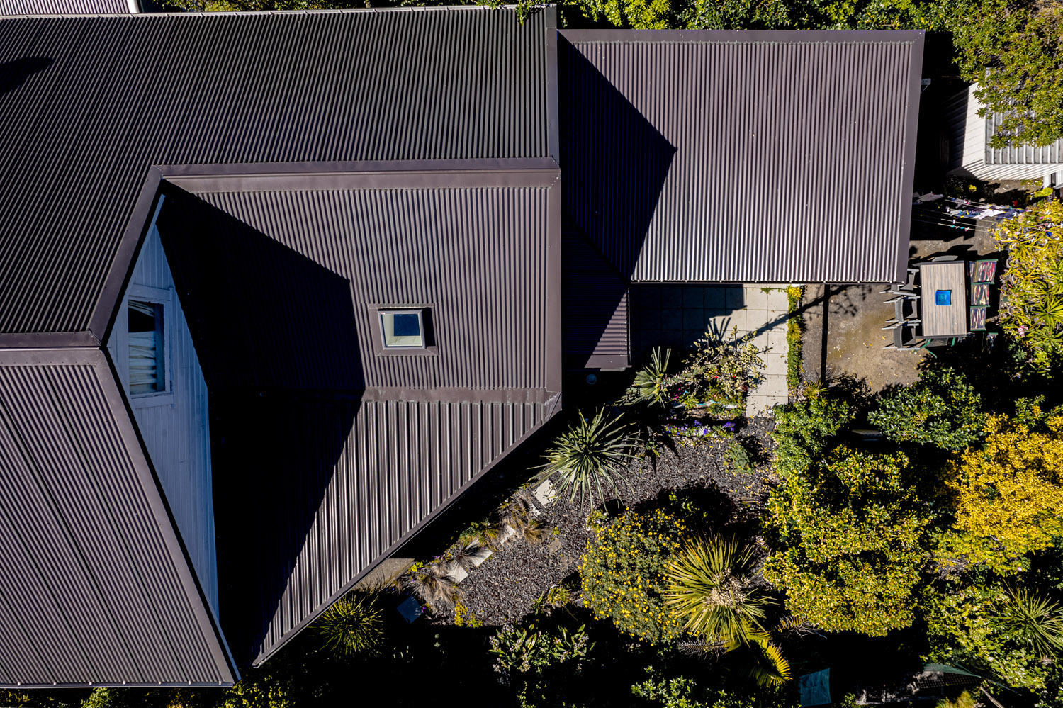 Once we removed the original super 6 asbestos roof we were able to install a stunning new COLORSTEEL Endura® 0.55 iron roof in the colour Slate. We used corrugated iron on the upper roofs. On the lower roof we used MC760 (trapezoidal profile) as the pitch is below the 8 degrees required to meet the standards for corrugated iron. We ensured the flashings were installed to best practice by removing and replacing the lower row of weatherboards where the lower roof and the house walls meet. This beautiful new roof was then finished off with a new Velux skylight.